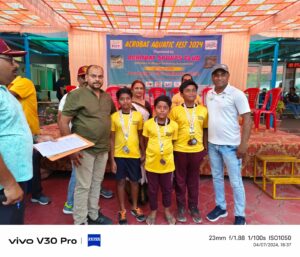 एक्रोबेट स्पोर्ट्स क्लब भोपाल, द्वारा पुरषोत्तम गौर तरण पुष्कर भोपाल में दिनांक 07 अप्रैल 2024 को “एक्रोबेट एक्वेटिक फेस्ट 2024” तैराकी प्रतियोगिता में विभिन्न आयु वर्ग के 105 बालक/बालिकाओं ने भाग लिया और शानदार तैराकी का प्रदर्शन किया | तैराकी प्रतियोगिता के पुरुष्कार वितरण समारोह में पुरषोत्तम गौर तरण पुष्कर के संचालक डॉ संतोष कटियार, म.प्र. ट्रायथलॉन के कोच कप्तान मनोज कुमार झामास्टर तैराक डॉ विक्रम बाथम, डॉ केसी रैकवार, तैराकी कोच श्री जोगिन्दर प्रसाद, प्रतीक कटियार द्वारा तैराकों को पुरुष्ककृत किया गया|