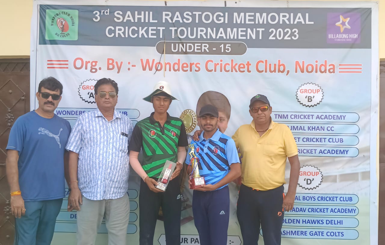 नोएडा। टाइगर क्रिकेट एकेडमी ने अजमल खां क्लब को तीसरे साहिल रस्तोगी मैमोरियल क्रिकेट टूर्नामेंट में 1 रन से हराकर शानदार जीत हासिल की। टाइगर क्रिकेट एकेडमी की टीम टाॅस जीतकर पहले बल्लेबाजी करते हुए 34.1 ओवर में 175 रनों पर सिमट गई। सार्थक झा ने 72 रनों की पारी खेली। स्वानिक सेठी ने 18 रन देकर 3 विकेट लिए। जीत के लिए 176 रनों के लक्ष्य का पीछा करते हुए अजमल खां क्लब की टीम 40 ओवर में 175 रनों पर सिमट गई। वेंकटेश भाटिया ने 53 रनों की पारी खेली। जोवन प्रीत सिंह ने शानदार गेंदबाजी करते हुए 12 रन देकर 4 विकेट लिए। जोवन प्रीत सिंह को मैन आफ द मैच चुना गया।