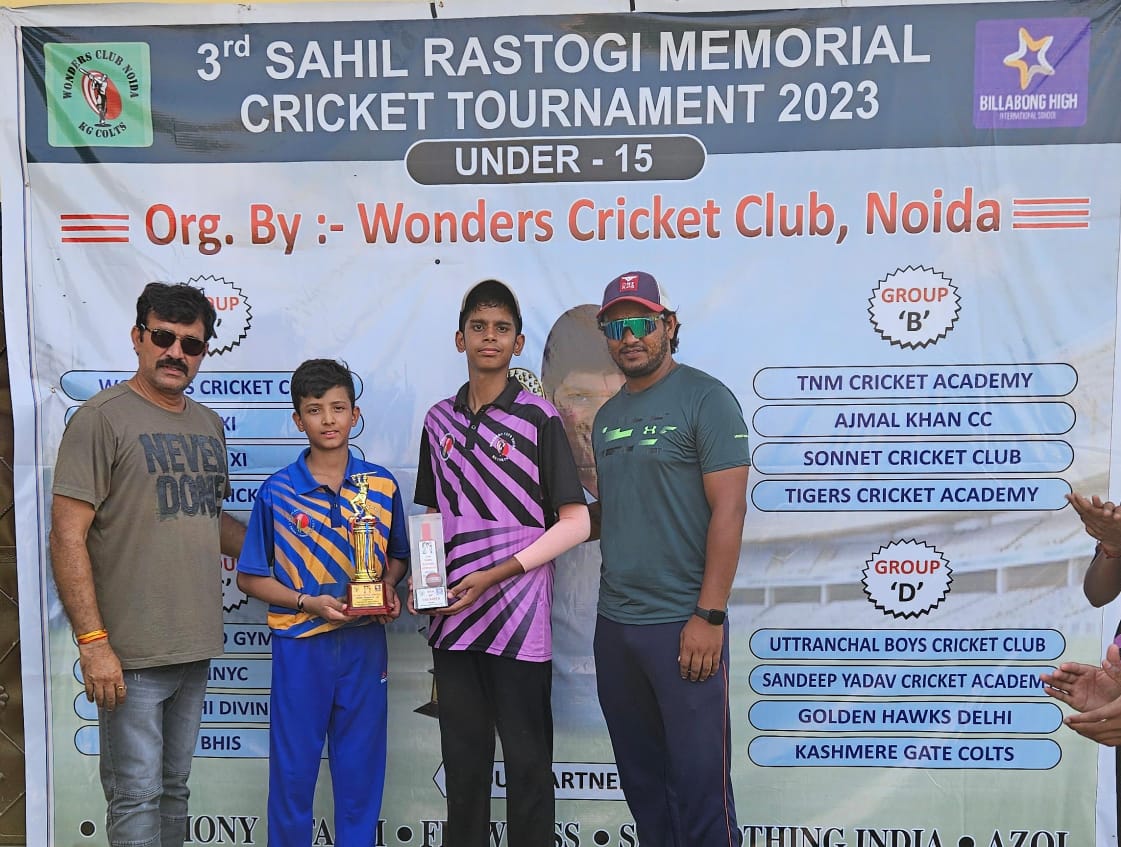 तृतीय साहिल रस्तोगी मेमोरियल अंडर-15 क्रिकेट टूर्नामेंट मैं आज संदीप यादव क्रिकेट अकादमी और सिटी क्रिकेट अकादमी के मध्य मैच खेला गया। संदीप यादव क्रिकेट अकादमी ने टॉस जीत कर पहले बल्लेबाजी करने का फैसला किया। पहले बल्लेबाजी करते हुए संदीप यादव क्रिकेट अकादमी ने 35 ओवर में 239 रन बनाकर ऑलआउट हो गई जिसमे समर्थ ने 95 रन बनाए। सिटी क्रिकेट अकादमी की तरफ से हर्ष राजपूत ने 2 विकेट लिए । जवाबी पारी खेलने उत्तरी सिटी क्रिकेट अकादमी की टीम 40 ओवर में 8 विकेट खोकर 180 रन ही बना पाई। लक्ष्य बर्थवाल ने 72 रन की पारी खेली। स्टार 11 नोएडा की तरफ से अर्जव शर्मा ने दो विकेट लिए। समर्थ को मैन ऑफ द मैच चुना गया। इस तरह यह मैच संदीप यादव क्रिकेट अकादमी ने 59 रन से जीत लिया।