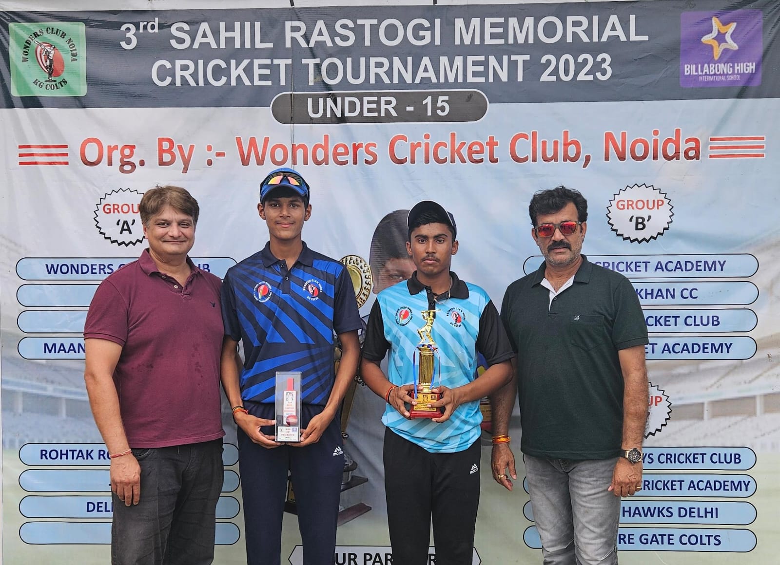 तृतीय साहिल रस्तोगी मेमोरियल अंडर-15 क्रिकेट टूर्नामेंट मैं आज वंडर्स क्रिकेट क्लब नोएडा और वी आर इलेवन के मध्य मैच खेला गया। वी आर इलेवन ने टॉस जीत कर पहले बल्लेबाजी करने का फैसला किया। पहले बल्लेबाजी करते हुए वी आर इलेवन की टीम 34.5 ओवर में 112 रन बनाकर ऑलआउट हो गई जिसमे उत्सव ने 30 रन बनाए। वंडर्स क्रिकेट क्लब नोएडा की तरफ से दक्ष चंदेल ने 4 विकेट लिए। जवाबी पारी खेलने उत्तरी वंडर्स क्रिकेट क्लब नोएडा की टीम 22.4 ओवर मे बगैर विकेट खोए 113 रन बनाकर यह मैच 10 विकेट से जीत लिया। आयुष्मान यादव ने नाबाद 67 रन की पारी खेली जबकि अथर्व सिंह ने नाबाद 41 रन की पारी खेली। आयुष्मान यादव को मैन ऑफ द मैच चुना गया।