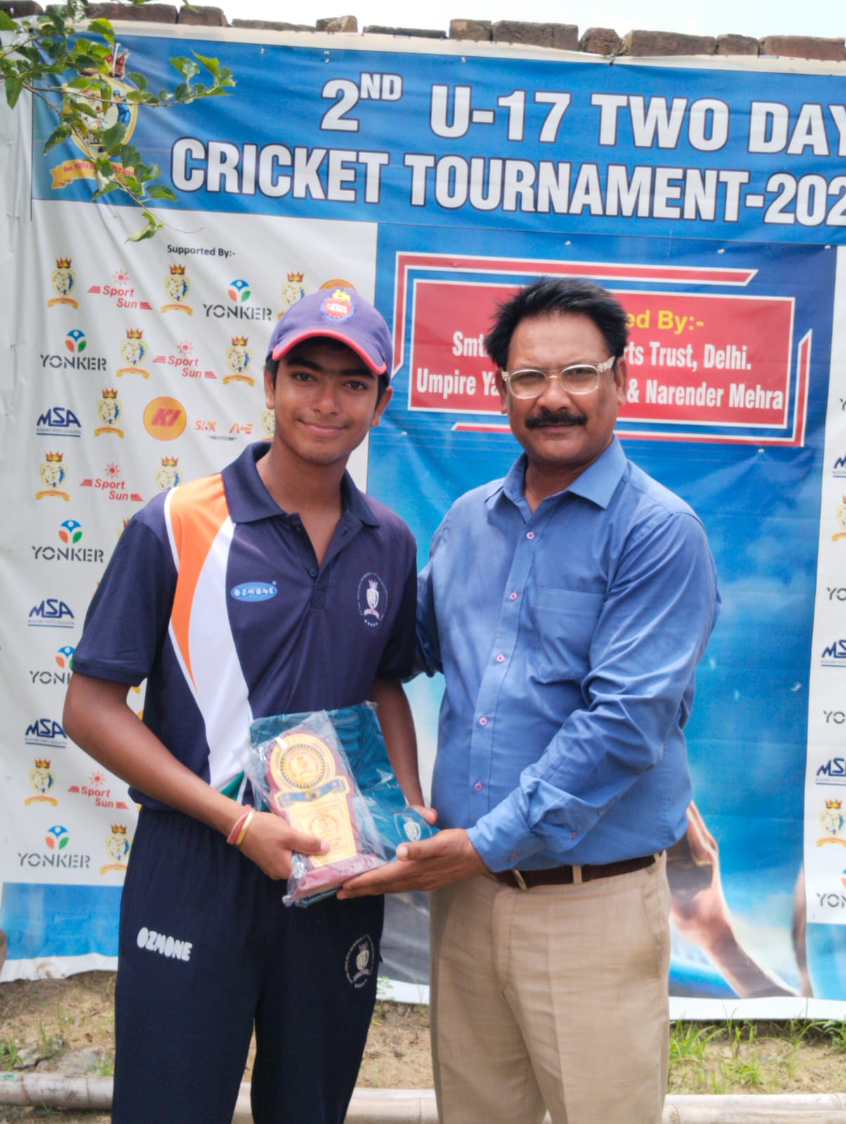 मैन ऑफ़ द मैच विवान जिंदल की घातक गेंदबाजी 4 विकट 9 रन देकर शिवान तायल 4 विकेट 14 रन देकर और सचिन के धुआधार खेल 65 रन नॉट आउट के शानदार खेल की बदौलत प्लेयर्स क्रिकेट अकादमी ने आज से शुरू हुए तीसरे श्रीमती विद्या देवी मेमोरियल अंडर 17 क्रिकेट टूर्नामेंट में जी ए पी एस अकादमी को 10 विकेट से हारकर शानदार जीत दर्ज की पराजित टीम की और से अशप्रीत सिंह ने शानदर 37 रन बनाये आज मैन ऑफ़ द मैच विवान जिंदल को टूर्नामेंट सेक्रीटरी श्री यशवंत जी ने दिया।