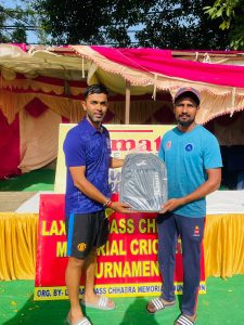 मैन ऑफ़ द मैच मोहित के शानदार शतक 115 रन, एकाश डोबाल 82 रन, नितिन 3/45 के शानदार खेल से कोलाज स्पोर्ट्स क्लब 313 /10 ने स्टेफेन क्रिकेट ग्राउंड में खेले जा रहे 39 वे आल इंडिया लक्ष्मण दास छाबरा मेमोरियल क्रिकेट टूर्नामेंट में रवि ब्रदर 301 /10 को 12 रनो से हराकर सेमीफाईनल में प्रवेश किया। रवि ब्रदर टीम की और से हार्दिक शर्मा ने शानदार शतक 141 रन, आयुष दोसेजा 38 रन, हरीश भड़ाना 33 रन और विक्रम महरा 3/34 पुनीत चहल 3/78 का खेल शानदार रहा। आज मैन ऑफ़ द मैच का अवार्ड मोहित को मोहिंदर छाबरा जी और धर्मेश भारद्वाज जी ने दिया और फाइटर ऑफ़ द मैच का अवार्ड हार्दिक शर्मा को और बॉलर का अवार्ड विक्रम मेहरा को दिया गया।