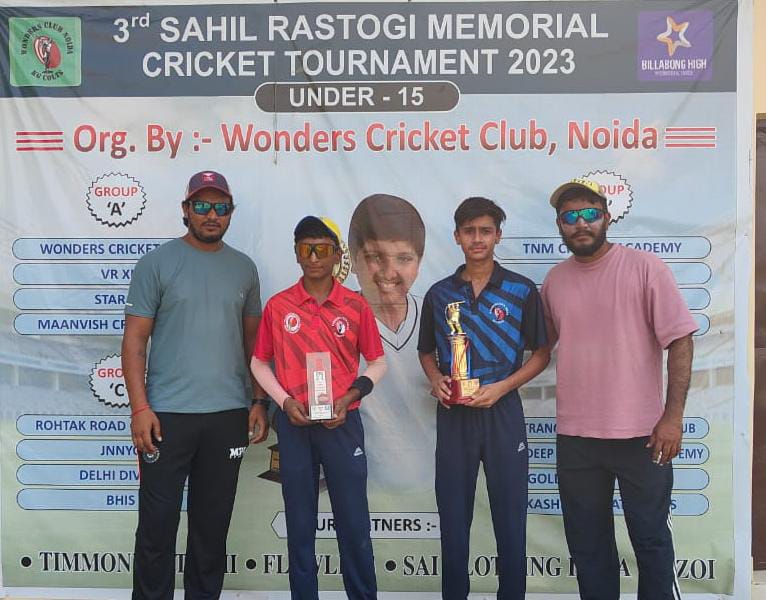 स्पोर्ट्स एज नोएडा। तीसरे साहिल रस्तोगी अंडर 15 क्रिकेट टूर्नामेंट में रोहतक रोड जीमखाना ने बिलाबाॅन्ग इन्टरनेशनल हाईस्कूल को आसानी से 182 रनों से हरा दिया। रोहतक रोड़ जीमखाना ने टाॅस जीतकर पहले बल्लेबाजी करते हुए निर्धारित 40 ओवर में 1 विकेट के नुकसान पर 312 रनों का स्कोर बनाया। लक्ष्य शेखरी ने 151 व अभिषेक चहल ने 114 रनों की पारी खेली। शौर्य राॅय ने 1 विकेट लिया।