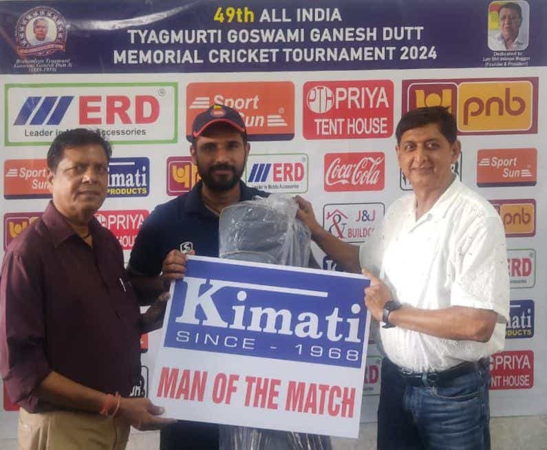 किमती मैन आफ द मैच हितेन दलाल रजनीगंधा क्रिकेट क्लब को श्री नरेश शर्मा (सचिव टी.वाई.सी.ए, दिल्ली) और श्री विजय कुमार वर्मा (सह प्रतियोगिता सचिव, गो. गणेशदत मेमरियल सोसयाटी, नई दिल्ली द्वारा दिया गया जबकि फाईटर स्पारटन सर्वश्रेष्ठ खिलाडी माधव कौशिक यंग क्रिकेटर्स क्रिकेट कलब को श्री अब्दुल सत्तार (संचालक सचिव, मौलाना आजाद क्रिकेट क्लब, नई दिल्ली) द्वारा दिया गया।